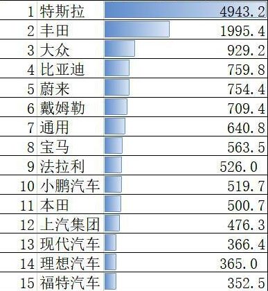 新能源车尤其是智能电动车的市场也随之水涨船高,蔚来、比亚迪、小鹏和理想等国产品牌汽车也纷纷杀入市值前15。