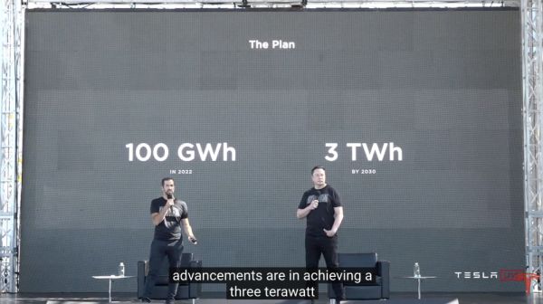 目前,特斯拉短期目标是到2022年达到每年100GWh,到2030年达到每年3TWh。