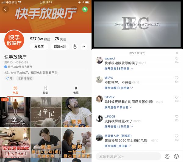尽管对于部分观众来说,在手机上竖屏观看近两个小时的长片可能是一件难以想象的事,但许多快手用户还是对此感到新奇、表示欢迎的。经历半年多的培养,账号也有了超过900万订阅。