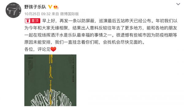 野孩子乐队和子健都表示自己的演出信息遭遇限流甚至屏蔽,其发布的演出信息即使不带外链和二维码也照锁不误,无奈之下只能把其演出信息在自己页面置顶,以保证至少粉丝们能看到。而在微博音乐发声道歉,且表示将推出音乐人扶持措施之后,评论区又引来了吴青峰粉丝的抱怨,称吴青峰微博已经被限流近一年。