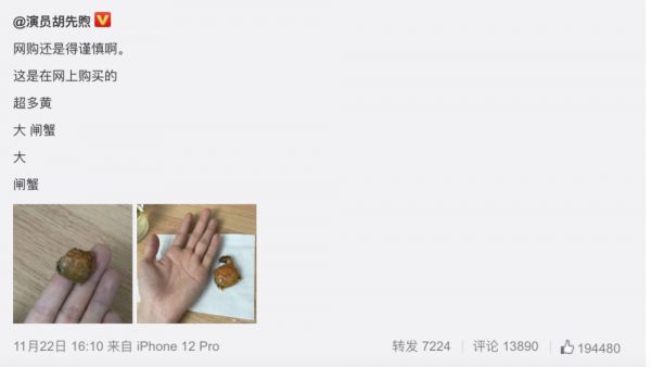 收到货的用户准备好姜丝蟹醋,烧开锅,迫不及待划开快递的一瞬间,当场傻眼:
