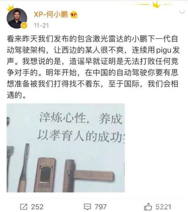何小鹏这边其实可以不予置评,或者学习蔚来李斌,摆出欢迎切磋的姿态;但“打的找不着东”这样的表述就明显在放狠话,使得矛盾性升级。
