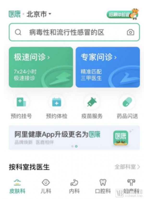 2020年9月,阿里健康APP更名“医鹿”,旨在为用户提供个性化健康服务。相较于旧版本而言,全新版本医鹿App界面更加清爽、聚焦,将医疗服务集合到了首页。