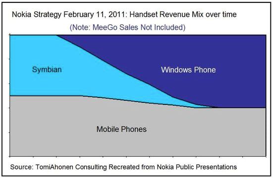 上图灰色部分是传统非智能机业务,浅蓝色是塞班机型,深蓝色是WindowsPhone。