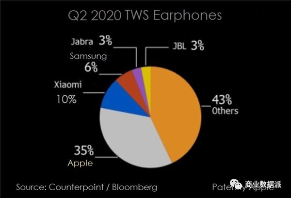 此外,苹果体系内,支撑起立讯精密近年增长的,是苹果2016年推出的AirPods一路攀升的销量。2019年苹果AirPods的销量为6000万副,外界预计2020年将达到9000万副。然而,这样的增长很难再持续。根据Counterpoint Research统计,AirPods的市场份额已经从2019年接近50%的高位,下降到目前的35%。而对于鸿海,苹果核心产品手机、平板以及电脑整机,都是其代工产品。