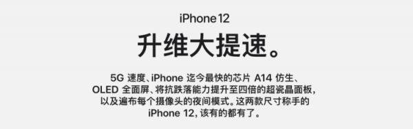 “5G”是 iPhone 12系列最大的卖点。该产品发布前,苹果给出的邀请函写着“high,5G”;当你打开官网iPhone 12的主页面,映入眼帘的第一幕也是“5G”;iPhone 12巨型户外广告,硕大的“5G”。