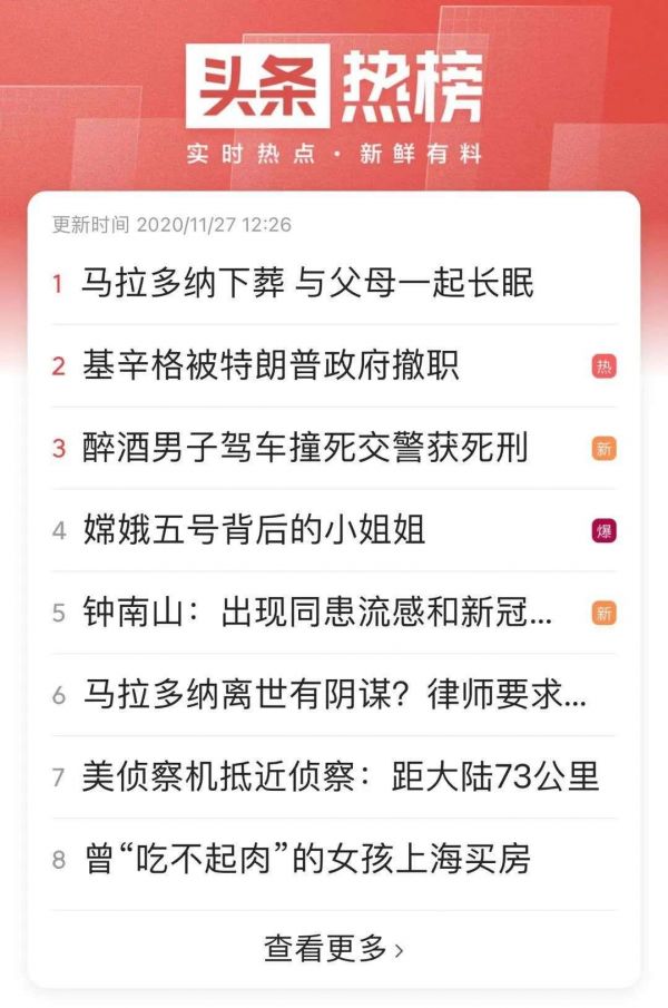 另外,热榜除了首页固定入口,整合的热点内容还会出现在信息流中。热榜这个产品,可以视为是头条一横一竖中的新变量,整合各种体裁的新内容形式热点专题,嫁接头条的个性化推荐分发,这是拓展消费规模的新形式。