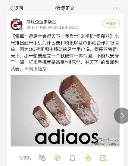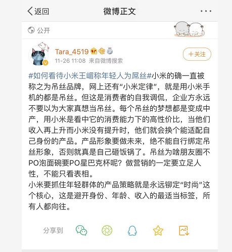 “得屌丝者得天下”这句话一出,米粉直接炸锅了,日前关于小米女高管“得屌丝者得天下”的相关讨论依然在持续发酵,对小米的品牌形象与米粉造成的伤害可能短时间内还难以衡量。