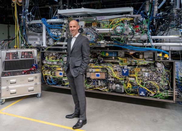 TRUMPF的CTO,Peter Leibinger,身后就是产生极紫外光的设备。来源:TRUMPF官网