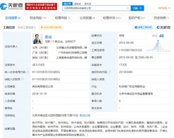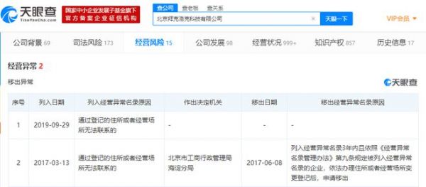 天眼查App显示,北京拜克洛克科技有限公司成立于2015年8月,注册资本约38.5万,法定代表人为戴威。2019年9月,该公司由于通过登记的住所或者经营场所无法联系,被北京市海淀区市场监督管理局列入经营异常名录。