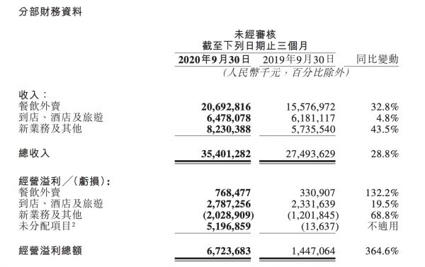 单日股价大跌7%后,美团于11月30日港股盘后发布了2020年Q3财报。