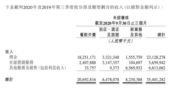 美团Q3哥业务收入指标 数据:美团财报