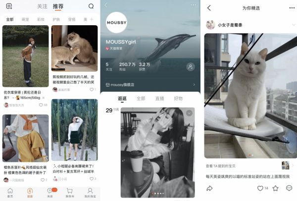 推荐页面则是典型的种草社区。与小红书等类似,推荐页面也是双列信息流,目前主要内容是各类达人发布的短视频和图文信息,而据阿里巴巴副总裁平畴的说法,今后创作者还能发布直播内容。