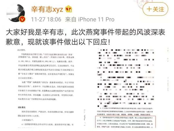 辛巴回应燕窝事件:深表歉意,退一赔三