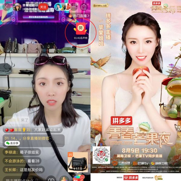 今年3月底,萱姐什么都没准备,就去拼多多旗下的多多进宝里挑了100多种商品,一个人拿手机直播了两小时。那一次,她的直播吸引了两万名观众。这个成绩,与她投入大量时间和人力成本的淘宝直播间不相上下。第二天,萱姐就和公司内部开会,拍板决定做拼多多的达人直播。(主播昵称:苹果姐姐)
