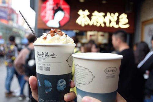 12月1日武汉首家茶颜悦色开业 ,一早门外已排起长队。现场有多位外卖跑腿小哥,有的七点多过来排队,跑腿费一杯一百元。为了“照顾”那些在外地无法品尝到茶颜悦色的粉丝,网上甚至曾出现过付费“代喝”。
