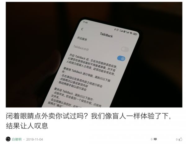 今年三月份,信息无障碍国标出台,在政策层面上对互联网应用提出了具体的无障碍要求;而市场也开始更加关注视障群体,华为、苹果等硬件厂商对视障群体的阅读体验进行了进一步改良;外卖等软件平台也在尽力弥补过去的疏漏,去年的经验放到今天来看,未免有些不适用了。