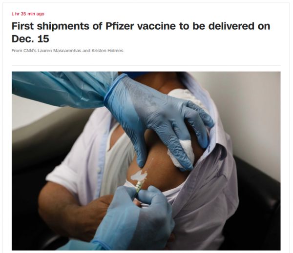 据CNN最新获得的文件显示,辉瑞的第一批新冠疫苗将于12月15日交付,随后Moderna的第一批疫苗也将于12月22日交付。