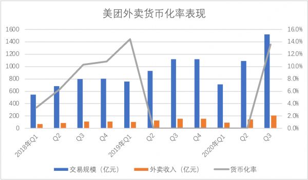 与此同时我们也发现,2020年Q3外卖交易金额较上年同期增长了36%,但外卖业务经营性盈利却同比增长了132.2%,在过去我们曾对此进行过解读,且观点集中在诸如:运营效率,对骑手成本的压缩等等。