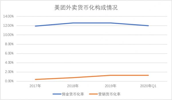 当然,2020年货币化率下降有多种原因,诸如中头部餐饮企业加入之后选择了自行配送,但整体上,美团外卖的货币化率在2020年已经相对克制了。
