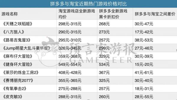以11月20日发售的《塞尔达传说:灾厄启示录》为例,淘宝游戏店铺普遍价格为295元到305元之间。这款游戏在拼多多上主流价格为315元,比起淘宝还是要贵上一些。不过由于有了黑卡金的抵扣,《塞尔达传说:灾厄启示录》的价格可以控制在280元以内。
