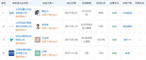 此外,喜马拉雅还与兴旺投资联合成立了“喜马拉雅兴旺”产业基金,投资主体为厦门兴旺互联二号投资合伙企业(有限合伙)。2018年,该基金投资了第一个项目“有律”。此后几年,该基金还投资了鲸打卡、斑码编程、闪电配音等项目。