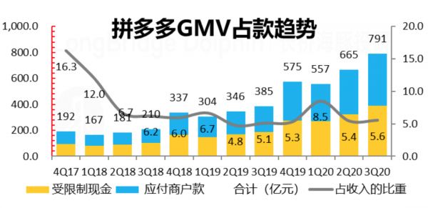 (1)用户在平台上付款后,在确认收货前,这个资金按道理是在支付体系内,但被拼多多确认为用户的预付款,被定义为了 “受限制现金”;