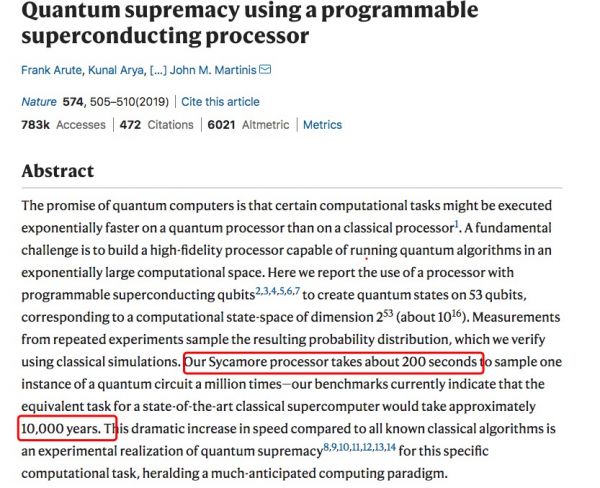 谷歌量子霸权论文正式登上Nature,200秒顶超算10000年