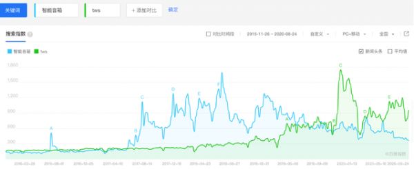 智能音箱、TWS百度指数对比