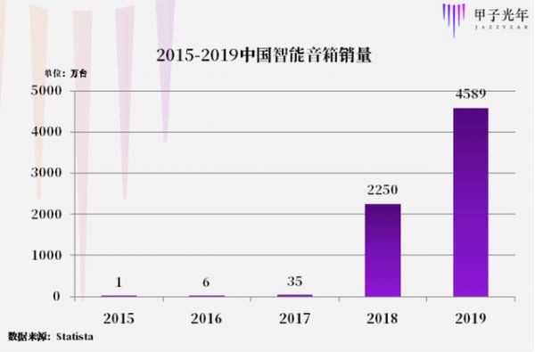 2015-2019年中国市场智能音箱销量增长