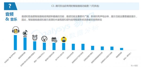2019易观对中国智能音箱行业深度发展分析中对用户使用功能的调研