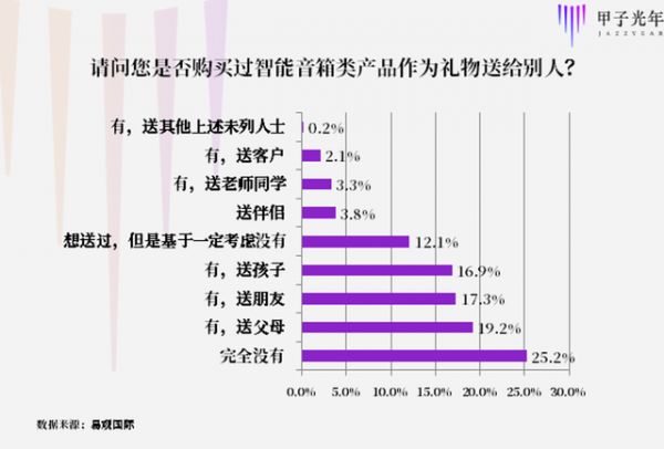 易观国际对是否将智能音箱送给他人的调研