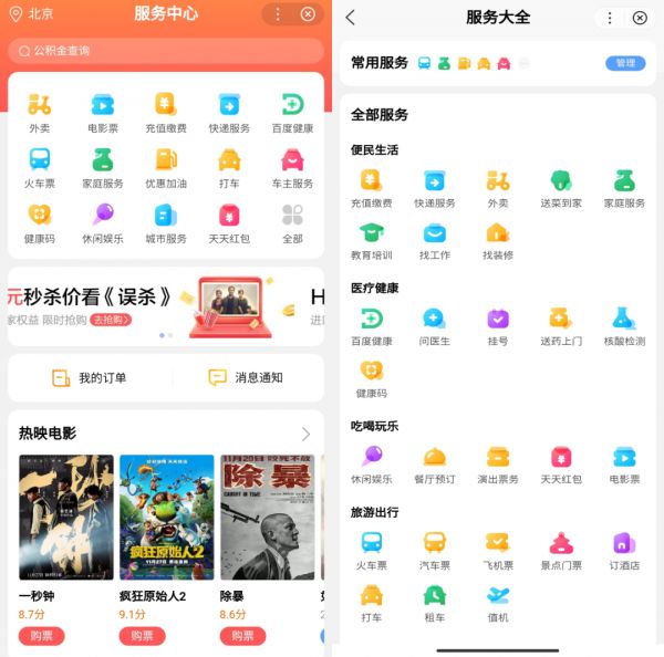 今年5月底,百度APP继上线“服务中心”后,还上线了“服务中心”入口,下拉APP就可看到。这个中心包括便民服务、吃喝玩乐和旅游出行等三大板块。同时,在百度地图中的“周边”标签中,也能看到美食、景点和娱乐等本地生活服务内容。