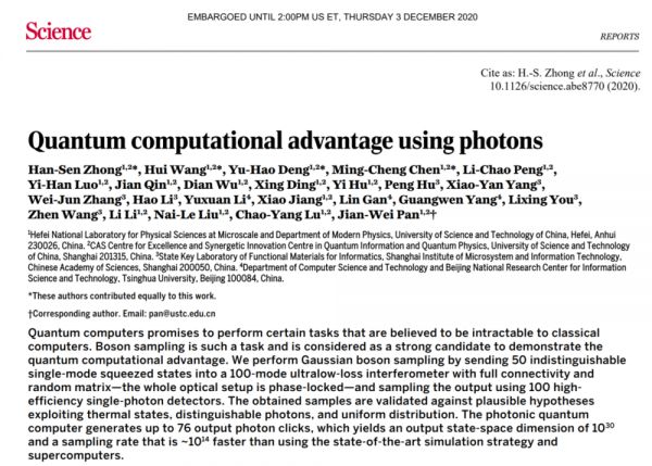 中国「九章」问世,超越谷歌「量子霸权」,潘建伟携90后团队登上Science