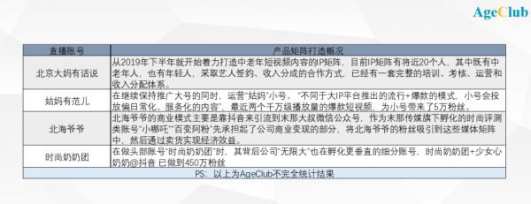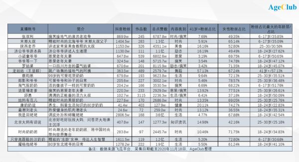 在微信公众号流量下行、小程序陷入粉丝增长瓶颈期的时候,也有快速反应改变,抓住新渠道红利的创业者,如2018年以来大量“火”起来的抖音、快手、B站等视频平台的中老年网红。据AgeClub统计,2018年下半年,有超过23个中老年内容账号开始上线运营。