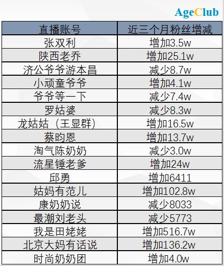 伴随内容同质化而来的,是“增粉”的不稳定。据AgeClub不完全统计,近三个月,这些中老年网红IP账号中,有6个在持续掉粉。