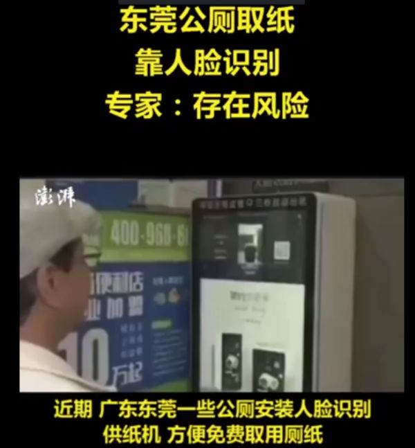 据南方都市报报道,位于东莞莞城街道东江大道03号的公厕最近在网络上火了,因为其使用了类似人脸识别的照相免费取纸巾的设备,央视网也报道了此事,虽说是方便了大家免费取用厕纸,但是人脸识别的方式却引起了一些市民的担忧。