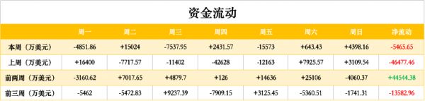 资金方面,上周最大净流入接近 1.5 亿美元(周二),最大净流出超过 1.5 亿美元(周五);ETH 上周全网资金净流出约 5400 万美元,环比下降 88%;从资金流动趋势来看,流出趋势放缓;未来一周,价格层面以盘整震荡或小幅回调为主。