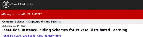 他们提出了一种叫做InstaHide的解决方案,这是一种用于加密训练图像的通用方法,可以在不泄露数据的情况下,允许对数据进行深度学习,解决了机器学习工具缺乏隐私性的重大问题。