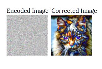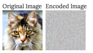 实际上,InstaHide是对图像进行操作的。给定一幅以范围[0,255]的像素表示的图像,InstaHide首先将每个像素转换为范围[-1,1]的像素。然后,在合并一些图像后,它将每个像素乘以1或-1,如上所示。因此,它将左边这张猫的图像转换为右边这张图像的「编码」版本,其中每个像素都乘以1或-1。