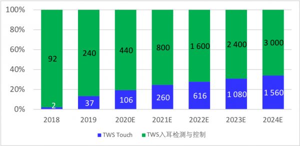 TWS Touch芯片将入耳检测功能与触碰控制功能结合在一起,预计2020年底面世,且已确定Alpha客户。曦华表示,相较于传统光感+Gsensor方案,TWS Touch无需开孔、集成度高、体积小、功耗低、触控体验好。自2016年Airpods发行后无线智能耳机快速增长,曦华预计2023年将突破10亿颗。同时,除Apple外绝大部分TWS耳机采购决策者和使用者在中国大陆,因此进口替代机会高。