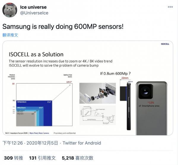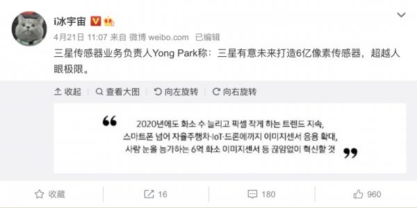 事实上,早在今年4月份,@i冰宇宙就已经在微博表示,三星未来将打造6亿像素图像传感器。现在看来,三星应该已经在实施这项计划。