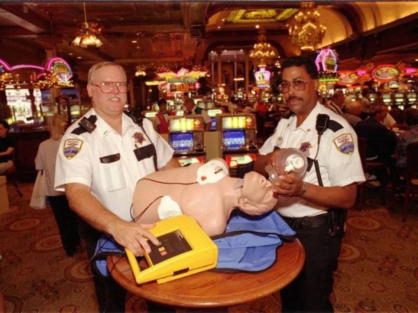 唯一清楚赌场布局的人,是赌场的工作人员,他们只好组成抢救的第一条阵线。赌场员工不仅要负责第一时间的急救、争取宝贵的时间,还要指引医护人员进场。在培训政策被采纳之后的5年内,安保人员手中的AED救了上千条人的性命。