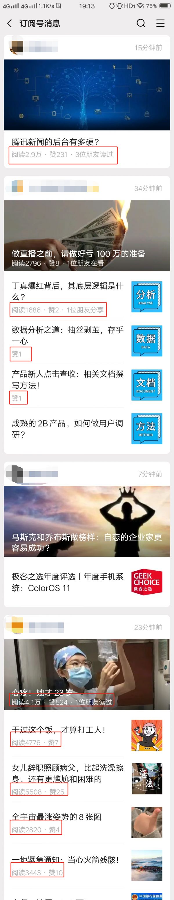 显示数据变多:除了显示朋友读过之外,还可能显示阅读量、点赞数、朋友在看数,且每个数据在推荐中的权重还不一样。