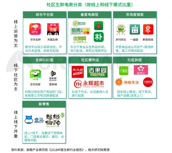 社区生鲜电商目前模式众多,大体可以分类以下三大类,以线上运营模式为主的、以线下社区为主以及线上线下并重的。