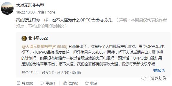 作为OPPO、vivo等品牌的幕后缔造者,原步步高集团董事长段永平似乎也看不懂OPPO为什么要做电视,他曾在近日自己颇为活跃的雪球账号上提出过疑问,而陈明永在产品发布会后的群访中就此隔空回复了他的影子老板兼师父“阿段”。