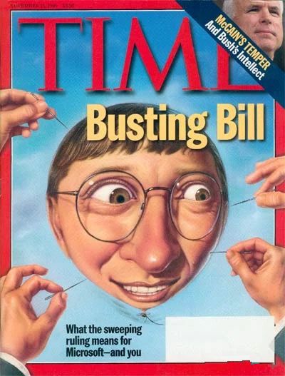 这场举世瞩目的官司旷日持久、耗费巨大,横跨克林顿与小布什两届美国政府。微软一度面临像当年AT&T一样被拆分的风险。