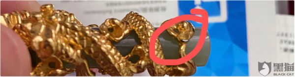 另一位投诉用户9月份在快手瑜大公子直播间内,购买了一款中国黄金吊坠,遇到了类似的问题。该用户表示,当时收到货后并未打开佩戴,但再拿出来看的时候,却发现吊坠已经有掉漆和变黑的现象。于是,他联系到了客服,但却以无法退货为由拒绝。