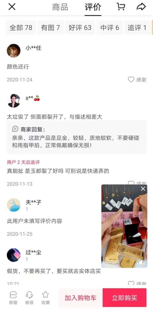 也就是说,直播间内所买到的中国黄金,并非是假货,而是制作较为粗糙,甚至掺杂了其他成分的产品。