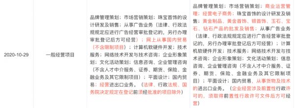 新腕儿注意到,在抖音直播间内的所谓中国黄金官方账号认证是一家名为深圳高盛品牌管理有限公司的企业。天眼查显示,该公司在10月29日刚刚做了经营项目变更,此前仅为主珠宝首饰设计研发及销售,并无黄金制品、黄金首饰等批发及销售的相关资质。